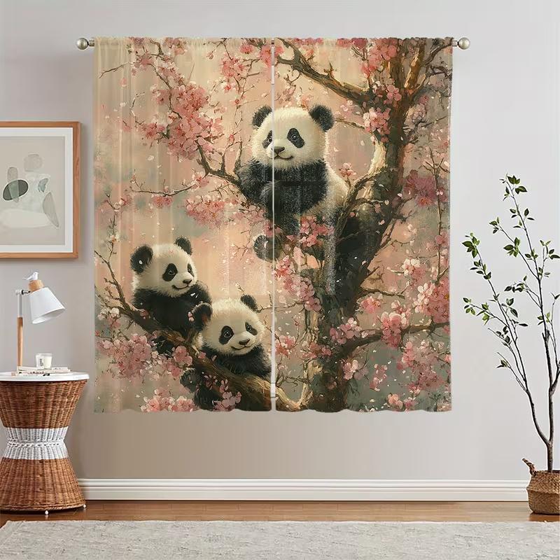 2 Pcs Cute panda print curtains,suitable for bedroom,living room kitchen decoration,home decoration,window decoration