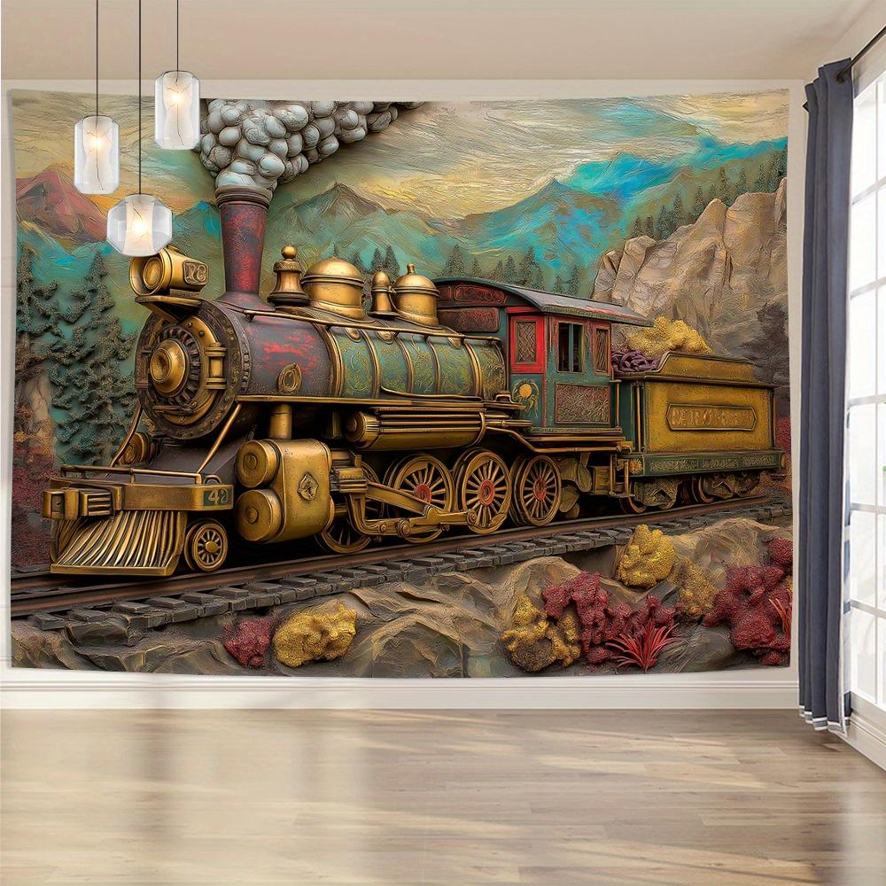 Gobelin ścienny 3D w stylu vintage z pociągiem parowym, poliester, 1 szt., dekoracja domu i biura, dekoracja salonu, sypialni, na imprezę, bez piór