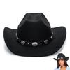 Felt Cowboy Hat for Women Men Rolled Wide Brim Cowboy Hats Western Hat with Buckle Belt Cowboy Cowgirl Hat