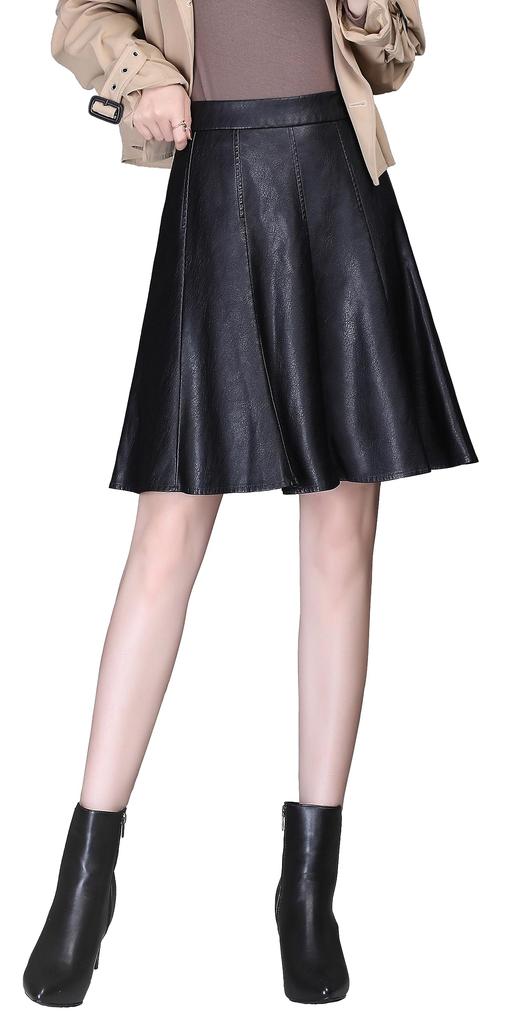 Syvent PU Leather Plus Shiny Faux Leather Solid Perfect for Fall and Winter Women's A-Line Skirt, Knee-Length, Size, High-Waisted, Colorful, Skirt,