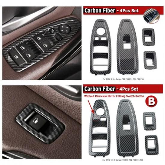 4pcs Carbon Fiber Window Lift Cover Switch Panel For BMW 1 Series F20 2012-2018