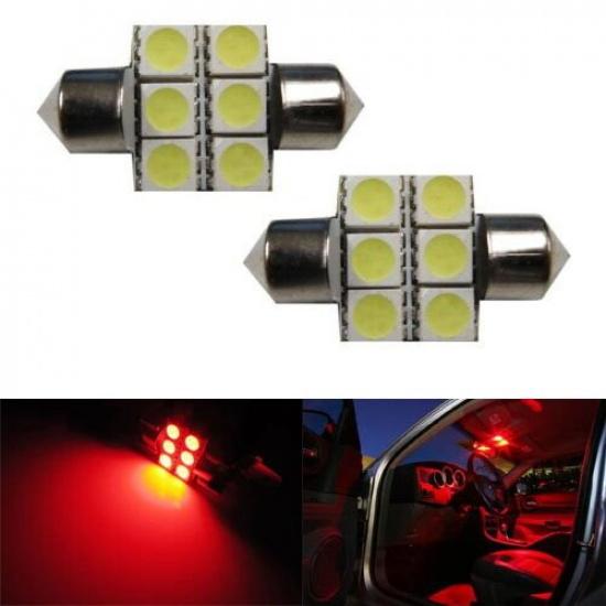 (2) Red 6-SMD LED Bulbs For Car Interior Dome Lights, 1.25" 31mm DE3175 DE3022