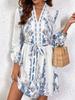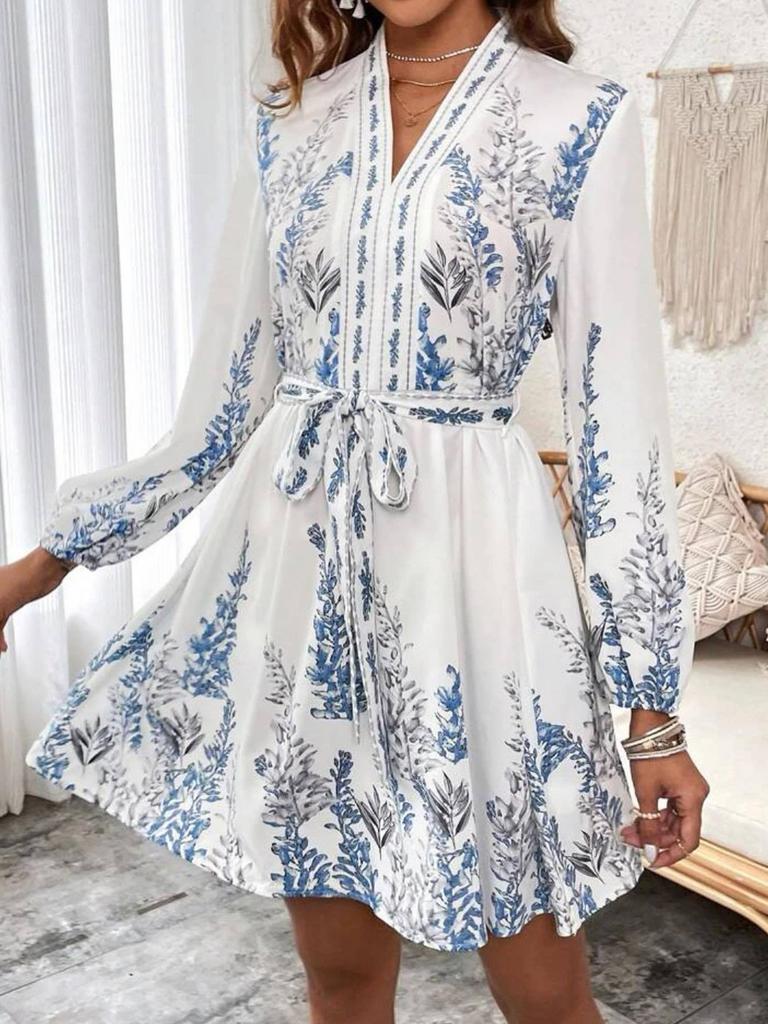 Wiosna Nowa Moda Damska Dekolt V Długi Rękaw Sukienka Boho z Nadrukiem