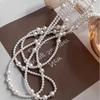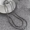 Długi, wielowarstwowy naszyjnik z szarych pereł w stylu retro, damski, lekki i luksusowy, z łańcuszkiem na obojczyk i łańcuszkiem na szyję