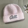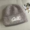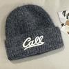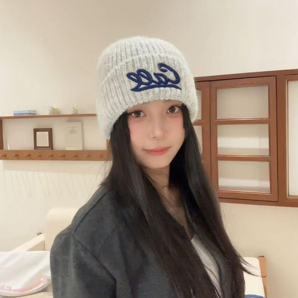 Autumn and winter new fashion letter embroidery knitted hat Korean version versatile solid color big head circumference shows the face small warm
