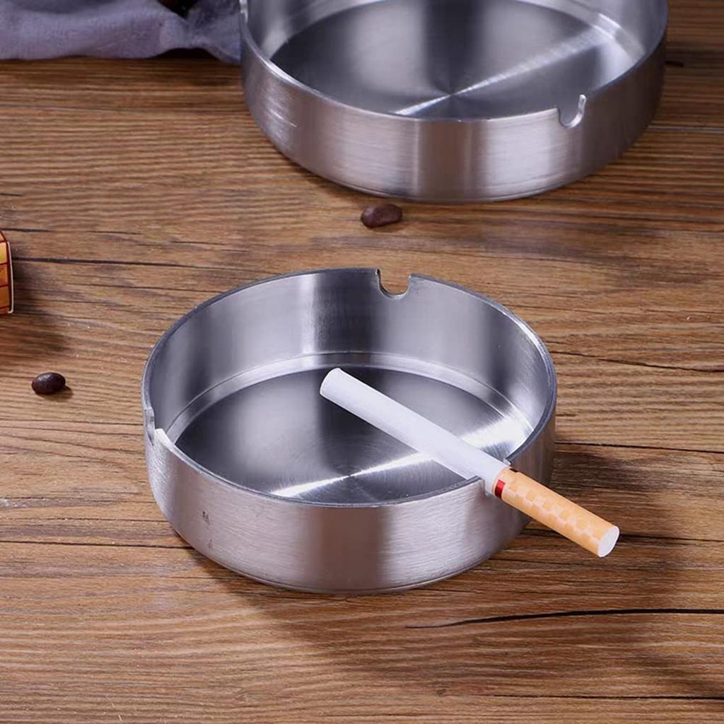 1Pc Smoke Ashtray Stainless Steel Cigarette Ash Silver Metal Ash Holder Heavy Duty Tabletop Ashtray For Hotels Restaurant Bar