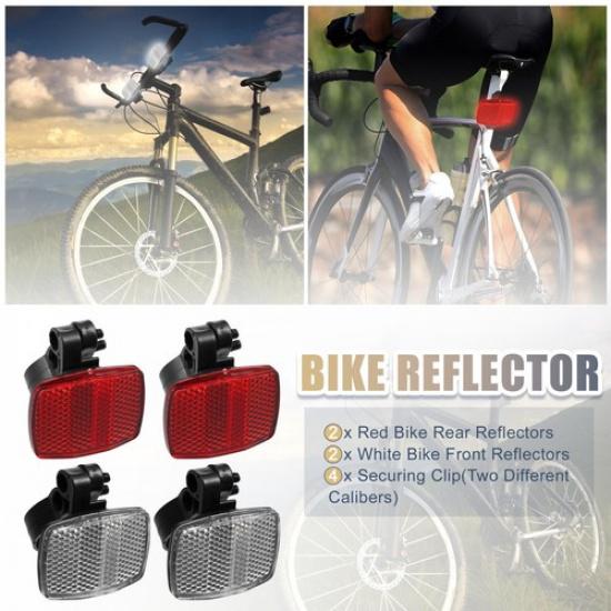 4pcs Bicycle Front Rear Reflector Kit Mountain Bike Safety Reflectors Red White