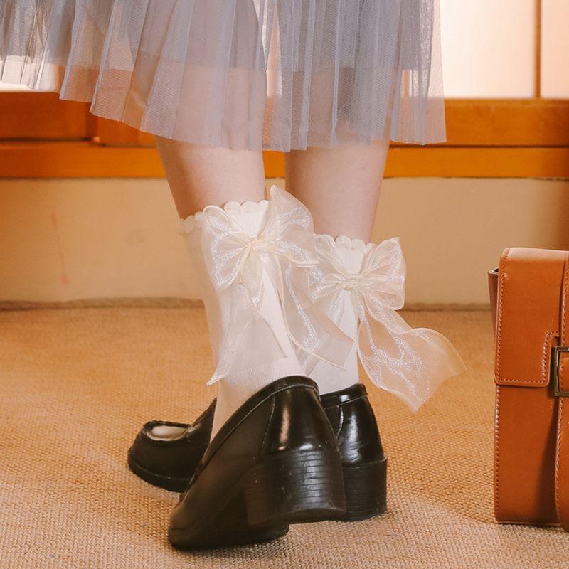 Lolita Socks, Trendy Mid-calf Socks, Cute Lace Bow, Princess Lace Socks