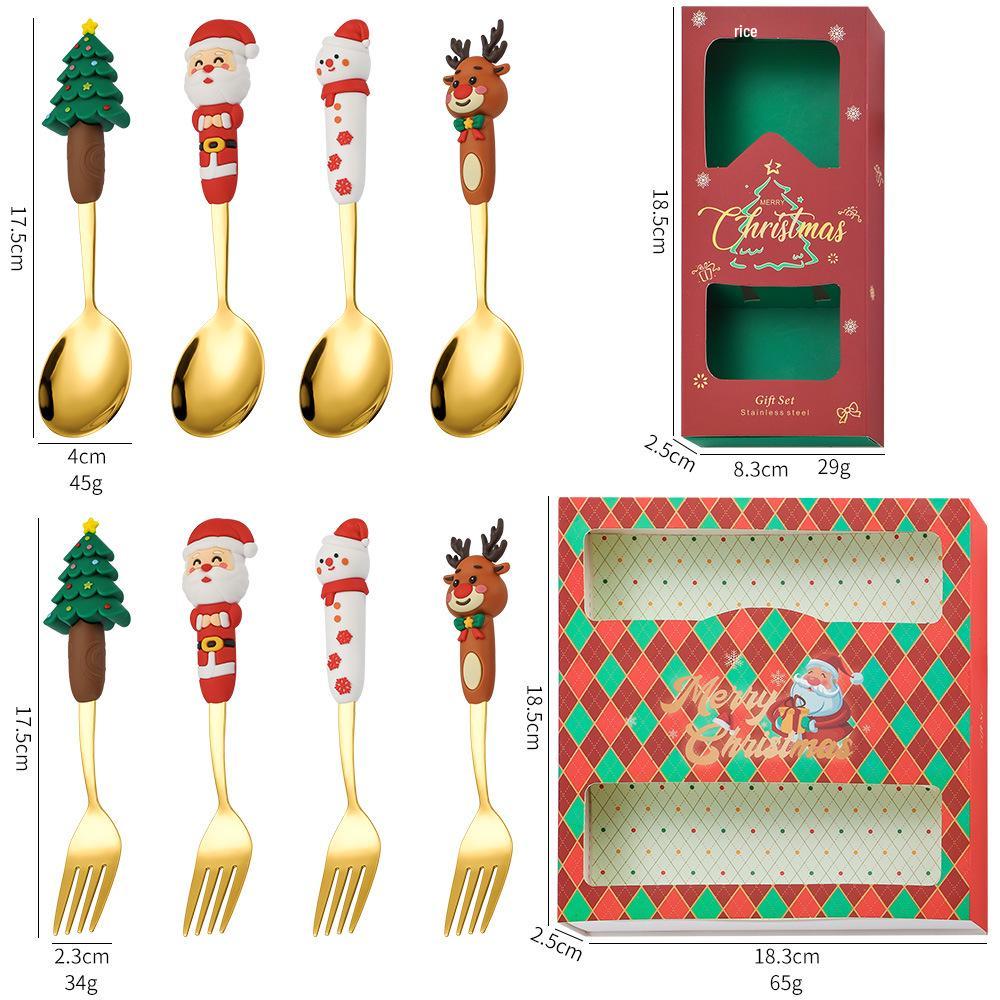 Kreatywny Zestaw Sztućców Bożonarodzeniowych ze Stali Nierdzewnej: Kreskówkowy Święty Mikołaj i Renifer Łyżka i Widelec z Pudełkiem Prezentowym