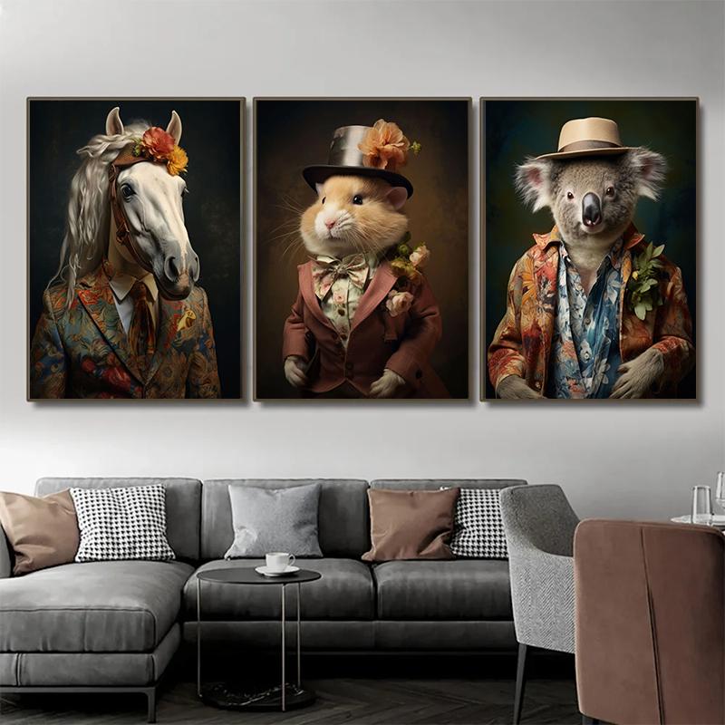 Plakat ze zwierzęciem w stylu Boho Lew Słoń Szympans Obrazy Nowoczesna Sztuka Ścienna Obrazy na Płótnie do Salonu Wystrój Domu