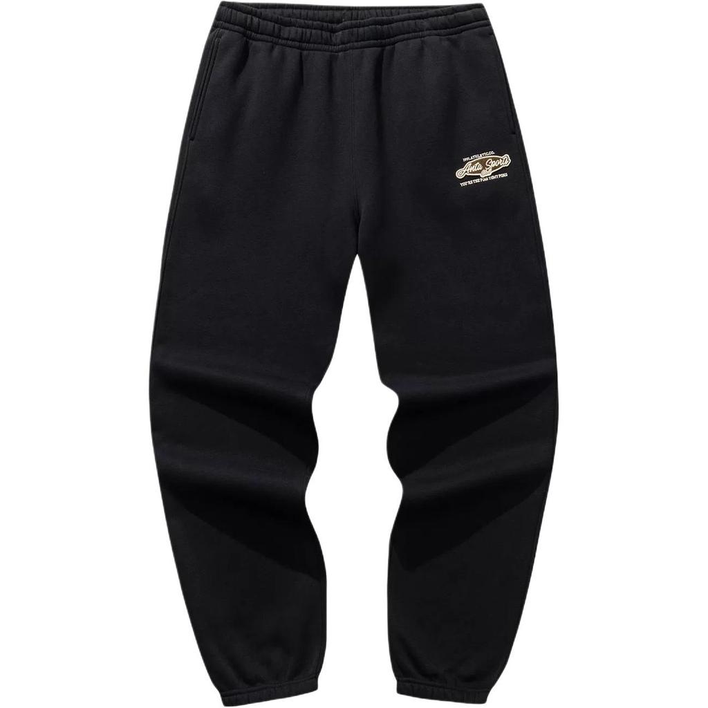 Anta Lifestyle Series Sports Retro Fleece Basic Black Fashion Versatile Comfortable Breathable Long Knitted Casual Pants Men bottoms 152618301N-2