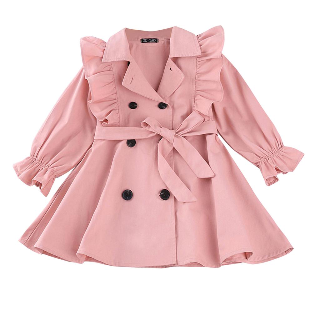 Toddler Kids Flare Sleeve Belt Solid Windproof Windbreaker Jacket Coat