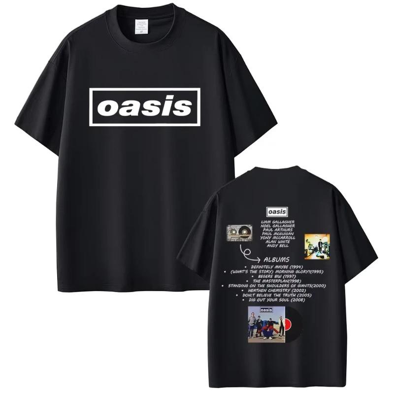 O-Oasis Koszulka Koszulki Brytyjskiego Zespołu Rockowego Męskie Damskie Casualowe Oversize'owe Koszulki Męskie Wysokiej Jakości Bawełniane Koszulki z Krótkim Rękawem