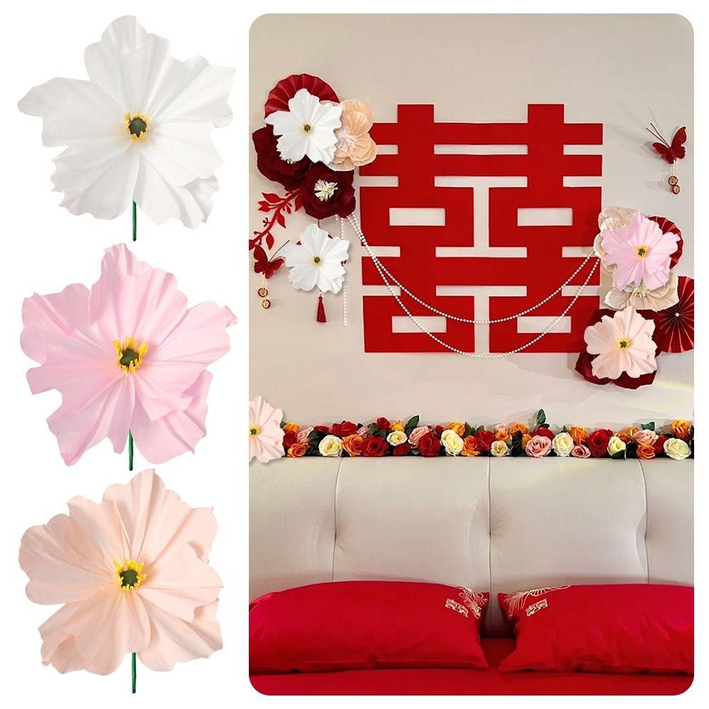 NEW 50/60CM DIY Wrinkle Paper Flowers PE Foam Large Size Handmade Flowers Rose Branch 40cm Length 3D Flowers Garden