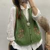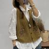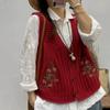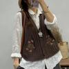 Damski luźny casualowy dzianinowy sweterek bez rękawów z dekoltem V wiosenny haft styl artystyczny revival styl starożytny