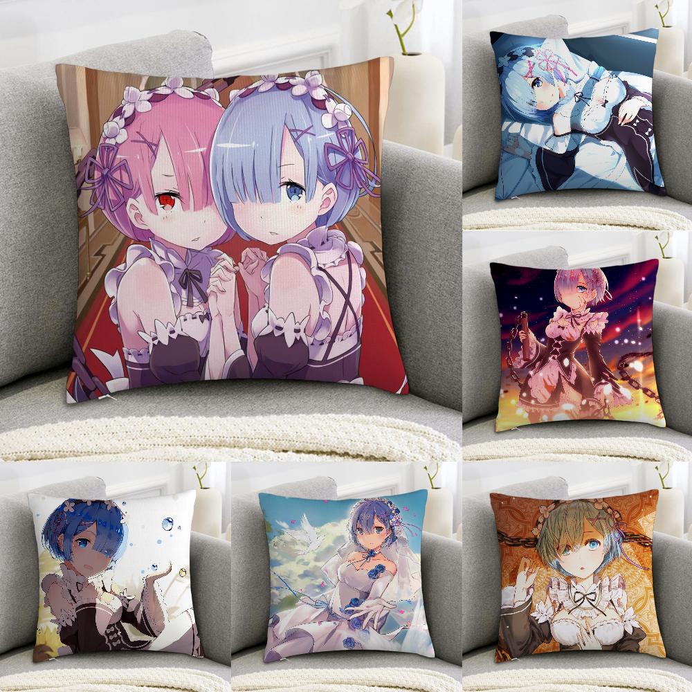 Re zero R-Rem Pillow Case Sofa Decorative Home Double-sided Print Plush Square Throw Pillow Covers Cushion Decor Cover