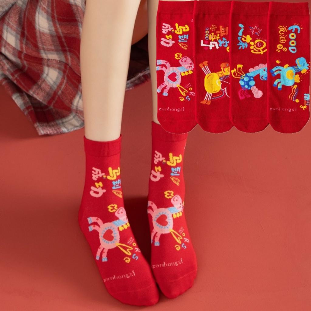 1/4 pary Kreskówkowe Poni Czerwone Skarpety Dla Kobiet Mężczyzn Wszechstronne Ciepłe Skarpety Średniej Długości 2026 Rok Konia Błogosławieństwo Prezenty Świąteczne