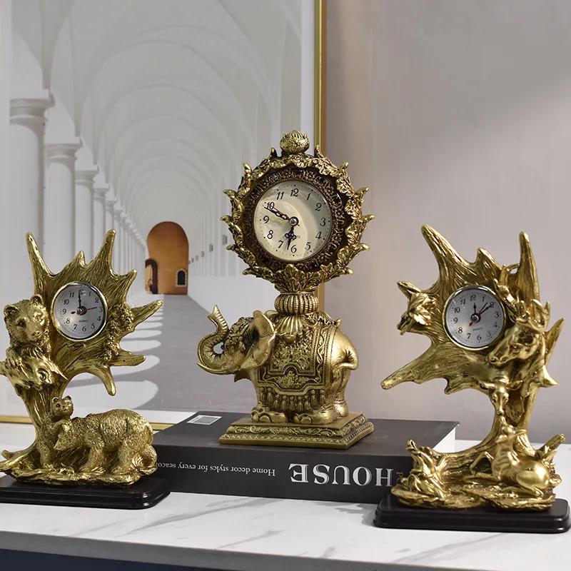 Zegar zwierzęcy w stylu vintage, rzeźba zegarowa, zegar biurkowy, dekoracja na blat, do domu, salonu, szafki na wino, dekoracja z żywicy, statuetka, prezent