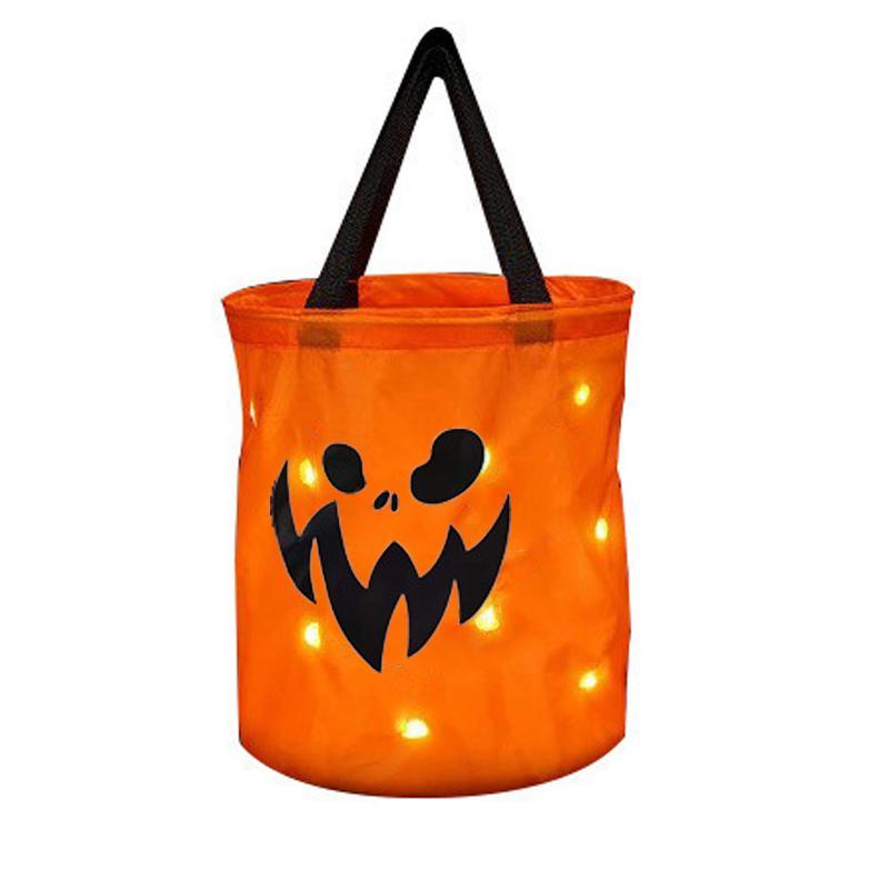 Torba Tote z Dynią na Halloween, Podświetlana Rączka LED, Wielokrotnego Użytku Torba na Cukierki na Trick or Treat dla Dzieci, Dekoracja na Imprezę, Prezent