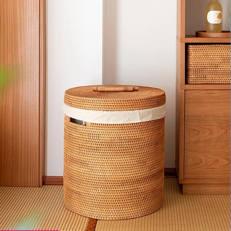 Do kosza na pranie Ins z pokrywką, plecionego z rattanu, kosza do przechowywania, wielofunkcyjnych pudełek-organizerów, wykwintnych, trwałych koszy na ubrania