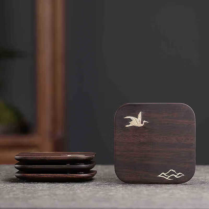 Cloud Crane Bamboo Tea Tray with Copper Inlay