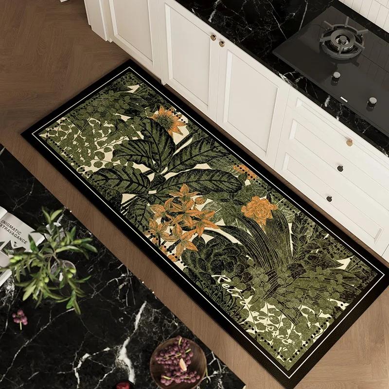 Vintage Kwiatowy Dywan Kuchenny Antypoślizgowy Wzór Liści Tropikalnych Mata Miękki Zmywalny Dywan Podłogowy do Kuchni Jadalni Dekoracja Domu