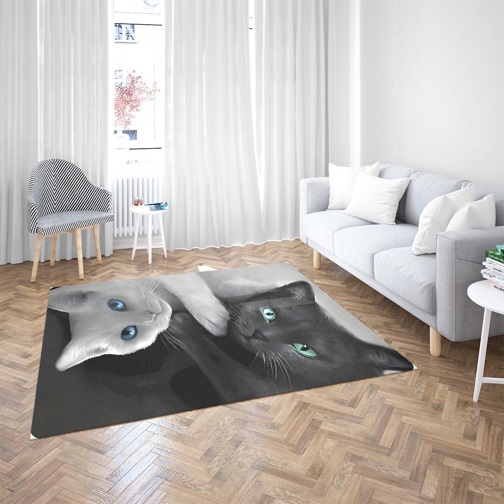 Black and White Cat Carpet Soft Non-Slip Living Room Bedroom Floor Mat Large Area Rug Easy To Clean 3D Carpets Home Decoration