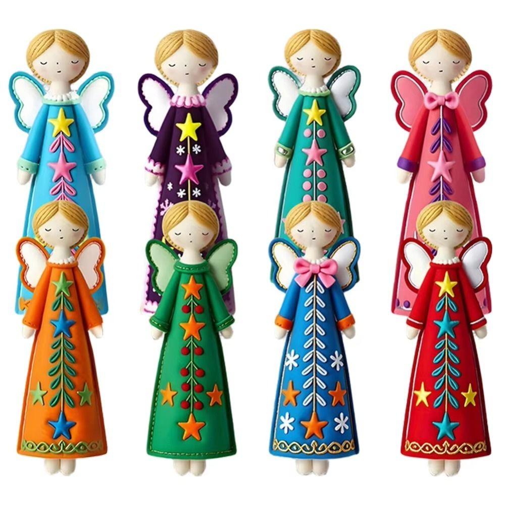 8Pcs New 2D Christmas Angel Pendant Flat Decorative Pendant Christmas Wooden Pendant Christmas Tree Top Decoration Home Ornament