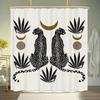 Zasłona prysznicowa Boho Gepard, Tropikalna zasłona łazienkowa Lampart Dzikie Zwierzęta, Nowoczesna Różowa Estetyka Fazy Księżyca Niebieska Kwiatowa Zasłona Łazienkowa