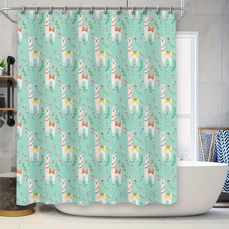 Urocze Zestawy Zasłon Prysznicowych z Lamą Wystrój Łazienki w Stylu Wiejskim Tropikalny Wzór Zwierząt z Deszczowego Lasu Tkanina Tło Wodoodporny Nowoczesny