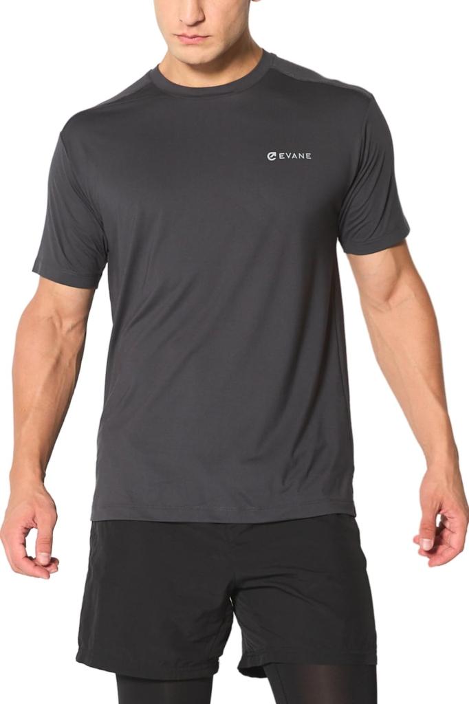 EVANE Stretch Dry Training Charcoal 4-Way Set-In T-Shirt (L, Gray)