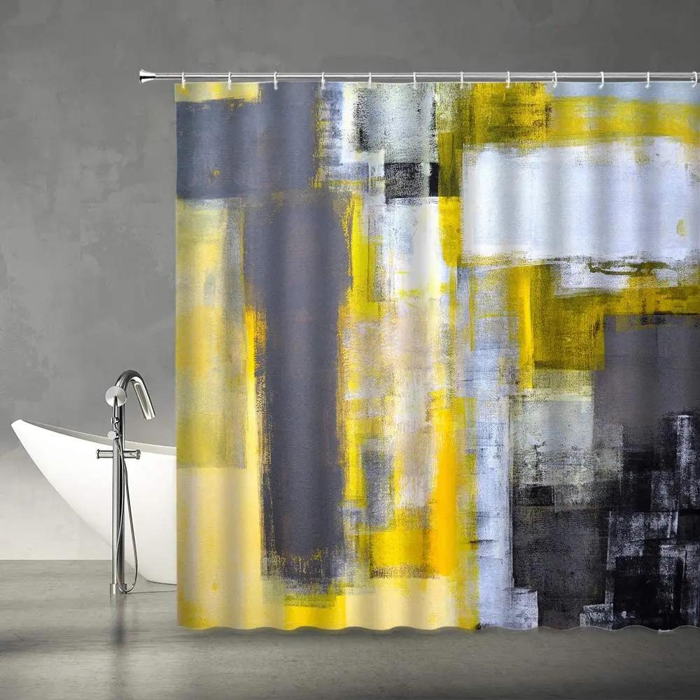 Gray and Yellow Shower Curtain Abstract Art Grunge Style Brushstrokes Oil Painting Ombre Design Modern Fabric Bathroom Decor Set