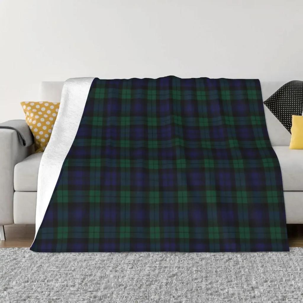 Koc Blackwatch Tartan Nowoczesny Uroczy Niebiesko-Zielona Krata Narzuta Pojedyncza Kołdra Koce Wielofunkcyjne