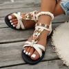 Damskie bohemy sandały płaskie z elastycznym paskiem wygodne letnie buty