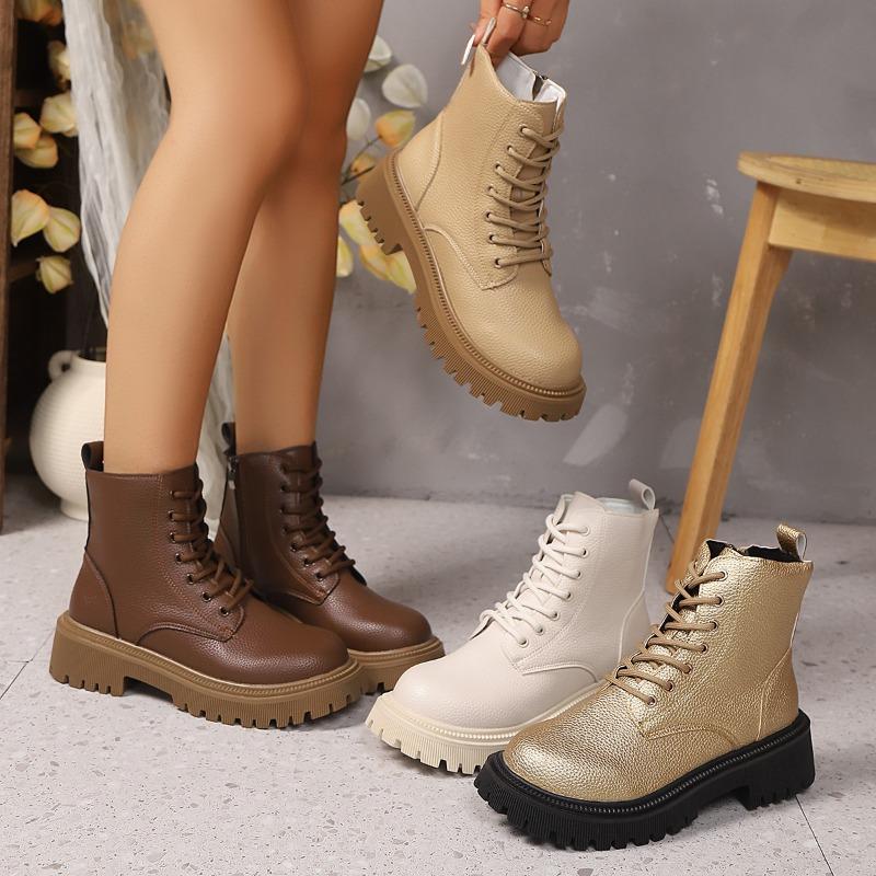 Damskie botki Martin na platformie o szerokiej tęgości, motocyklowe botki do kostki w stylu brytyjskim, europejskie botki hurtowe w magazynie