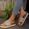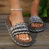 Damskie sandały na platformie w stylu boho, wielokolorowe, plecione, wsuwane