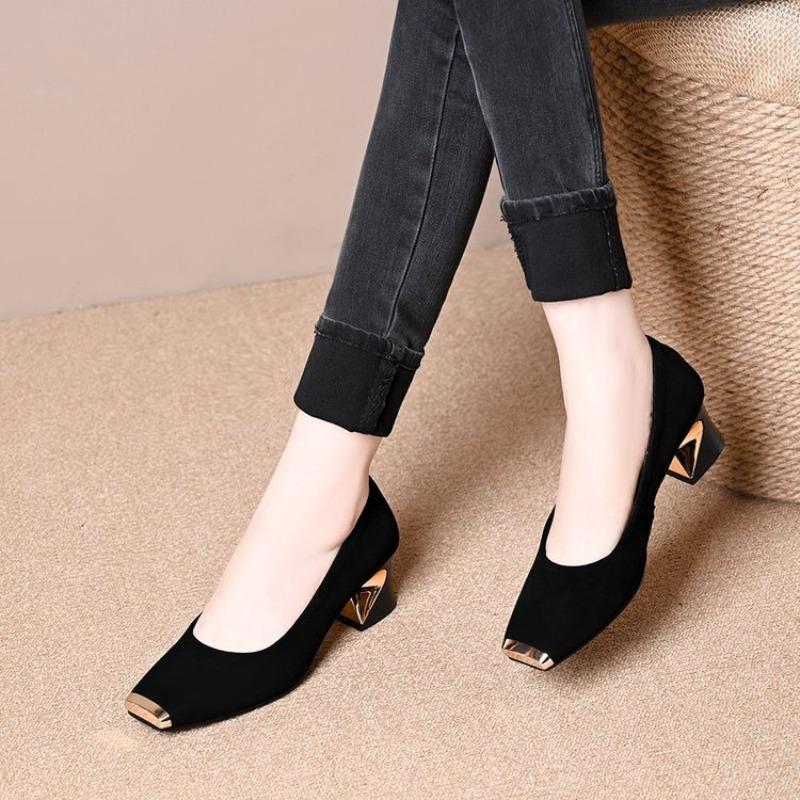 Metalowa główka anti-kick płytkie usta pojedyncze buty dla kobiet wiosna i jesień nowe gruby obcas wszechstronna miękka podeszwa małe skórzane buty dla kobiet
