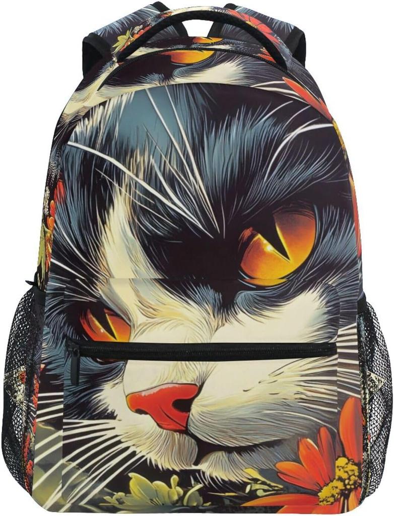 Plecak szkolny z nadrukiem kotów i roślin Regulowany plecak na książki dla chłopców, dziewcząt, dzieci Mały