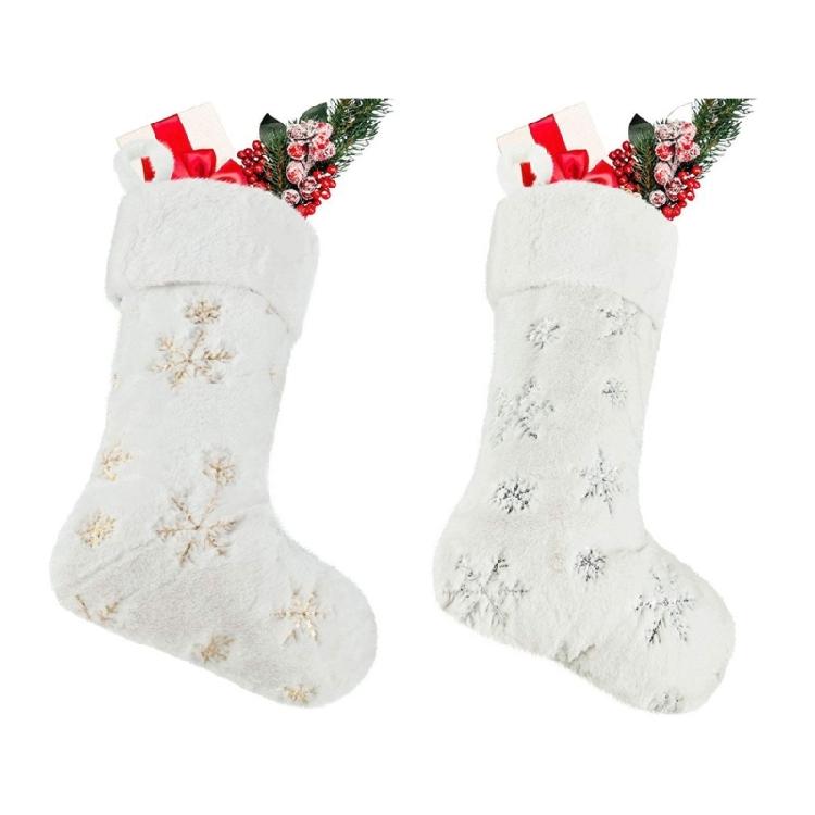 Winter White Christmas Stocking Hanging Bag Decoration Soft Textured Design Gift Storage Holiday Essential