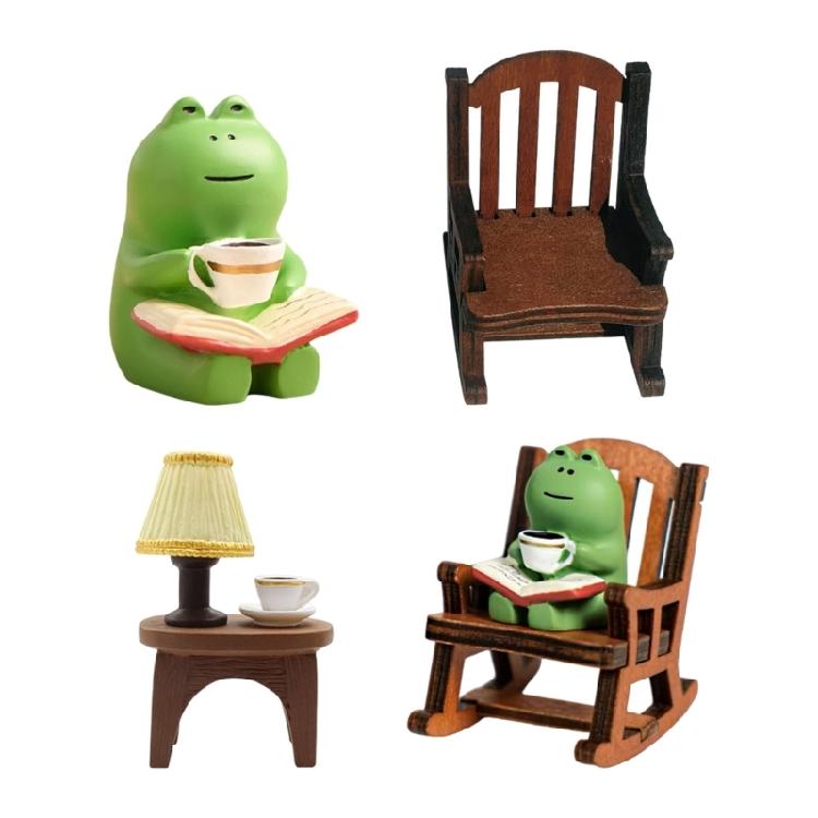 Cartoon Resins Coffee Frogs with Rocking Chair Miniature Decoration Ornament Perfect For Students And Collectors Gift