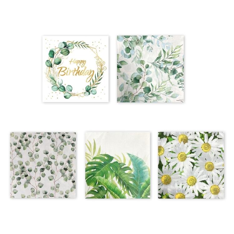 20PCs Eucalyptuses Patterneds Napkins Absorbent Dinnerware for Festives Gatherings
