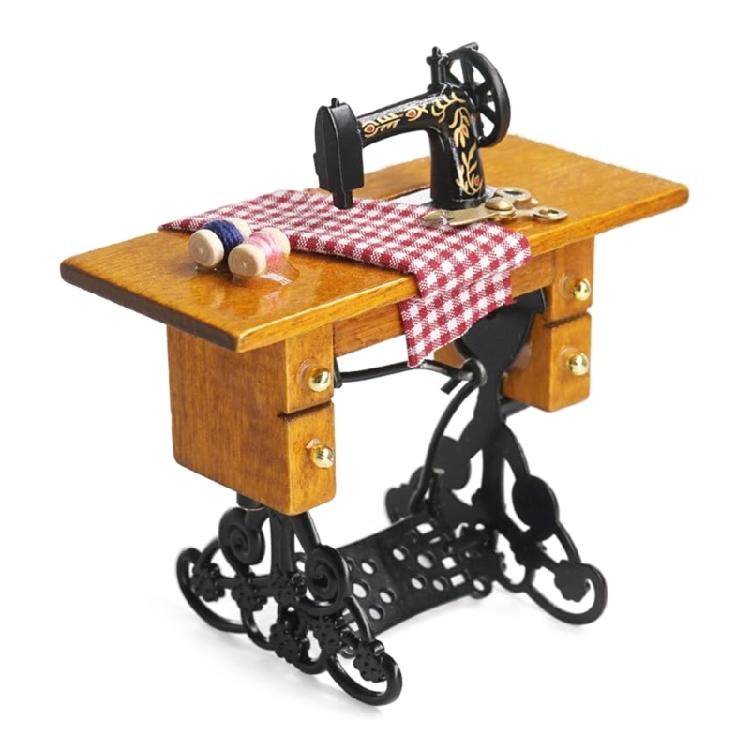 Detailed Miniature Sewing Machine Dollhouses Display Enhances Living Room Pretend Play Accessories