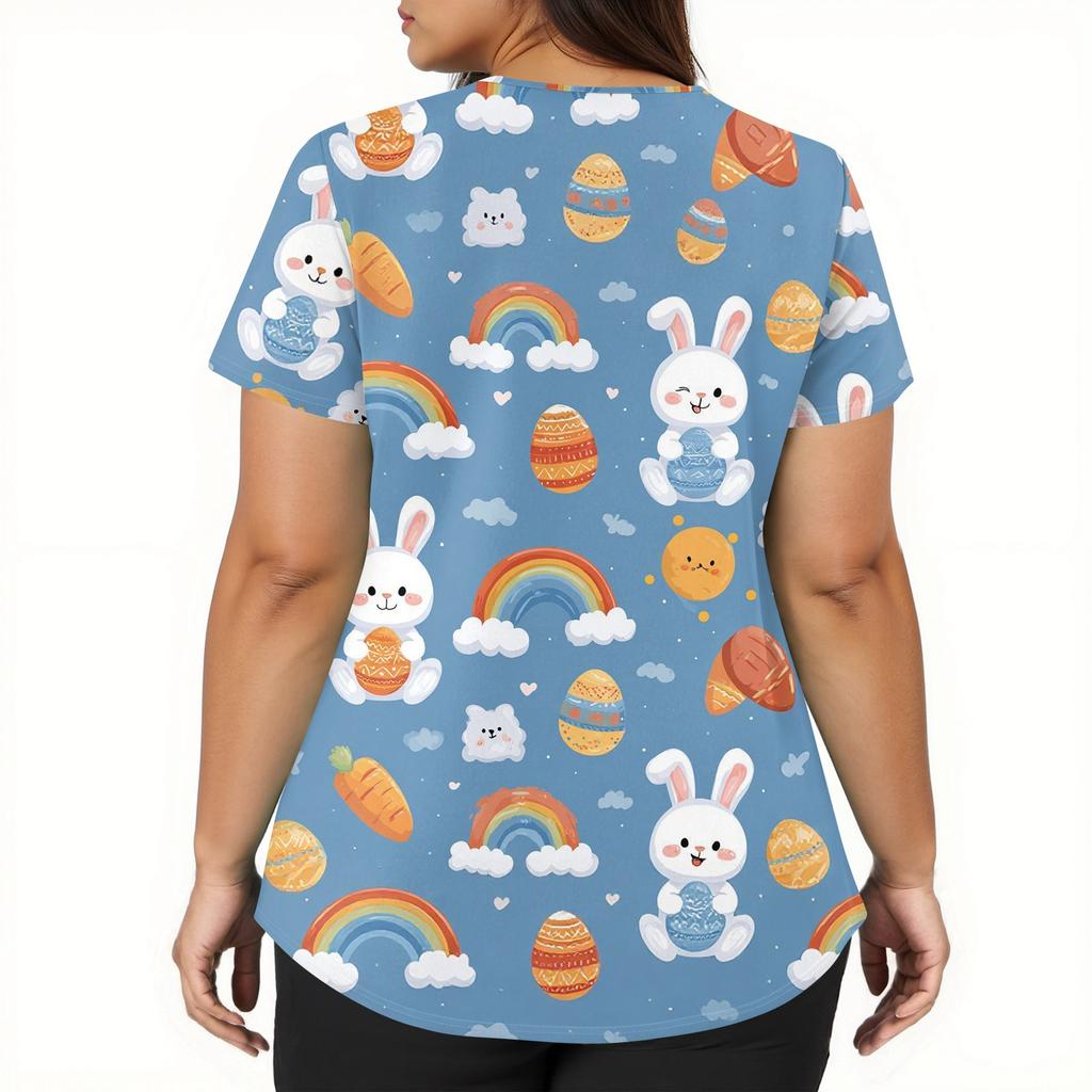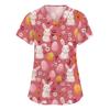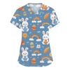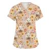 Moda damska Odzież robocza z dekoltem w serek i krótkimi rękawami z kieszeniami Topy z nadrukiem