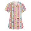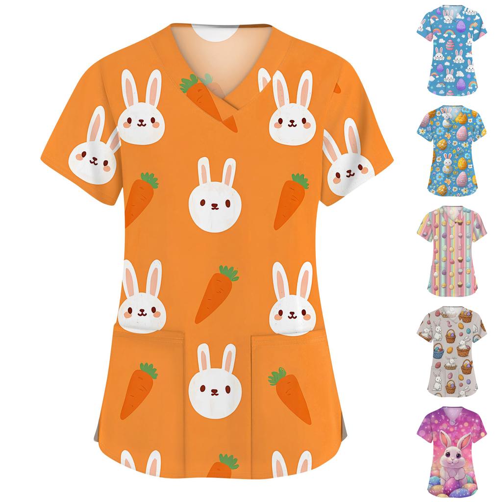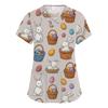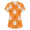 Moda damska Odzież robocza z dekoltem w serek i krótkimi rękawami z kieszeniami Topy z nadrukiem