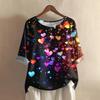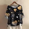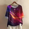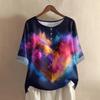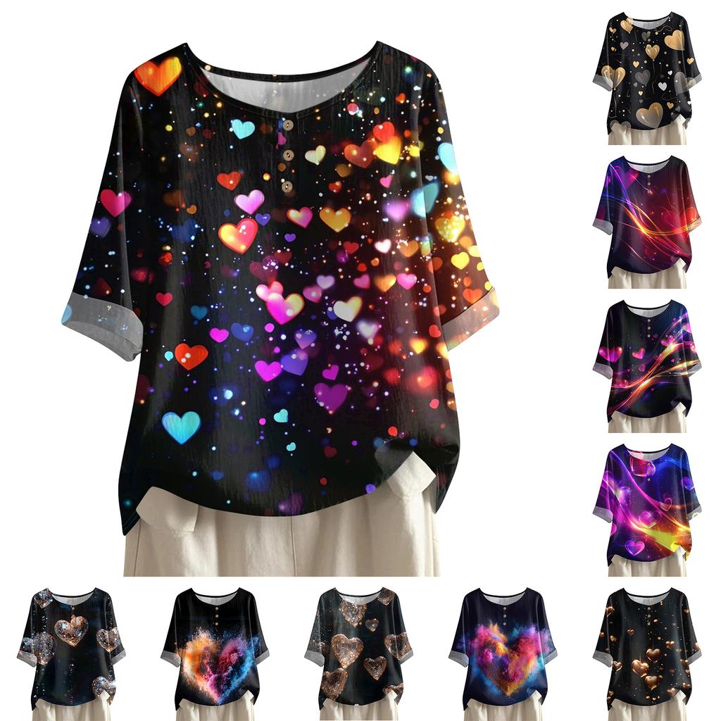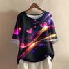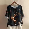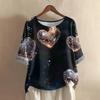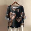Damska casualowa i wygodna bawełniano-lniana bluzka z okrągłym dekoltem, średniej długości, z modnym nadrukiem