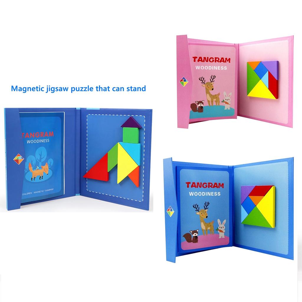 Wooden Magnetic Tangram Puzzle Book Educational Toys For Children Baby Kid Portable Learning Intelligence