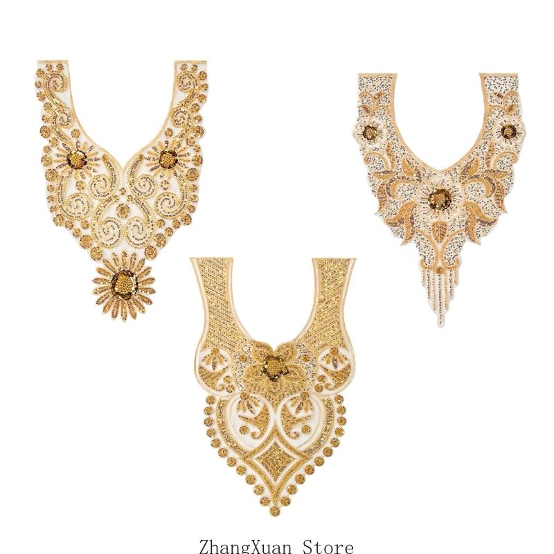 Aplikacja z haftowanych koralików na suknię ślubną, suknię wieczorową, naszywki do przyszycia na kołnierz, koralikowe cekiny, naszywki do przyszycia, aplikacja