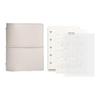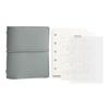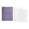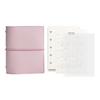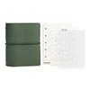 Portable mini notebook features compact refillable 5 rings leather binder covers with inner paper, easily fitting in pocket or school bag, handbag for note taking and journaling.