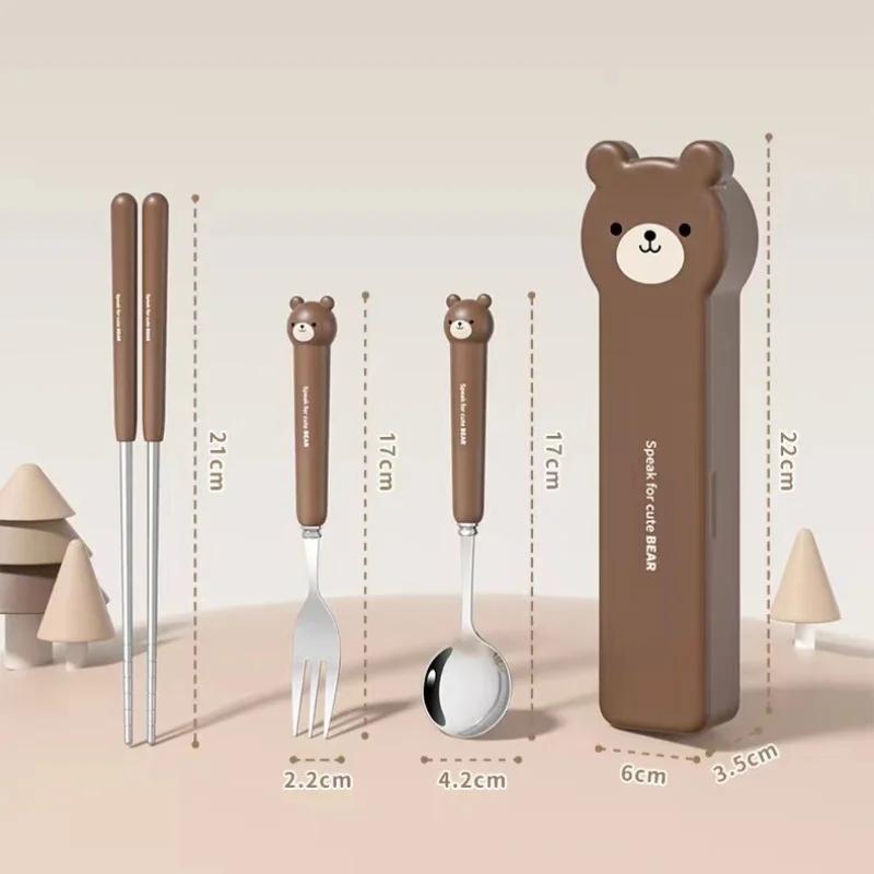 Cutlery Set With Case Cartoon Stainless Steel Fork Spoon Chopsticks Portable Cutlery Set Reusable Travel Tableware