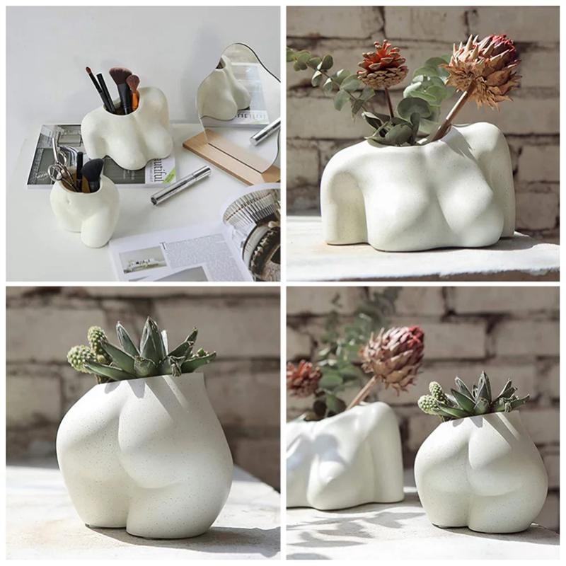 Mini Doniczka Dolnej Części Tułowia Kształt Kobiecego Ciała Doniczka z Otworami Drenażowymi, Żywiczna Doniczka na Rośliny, Uroczy Świąteczny B